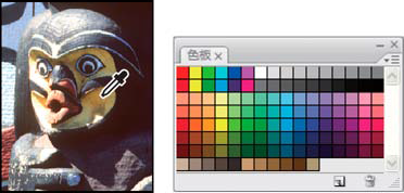 从图像(左)中选择颜色,然后将其添加到“色板”面板(右)